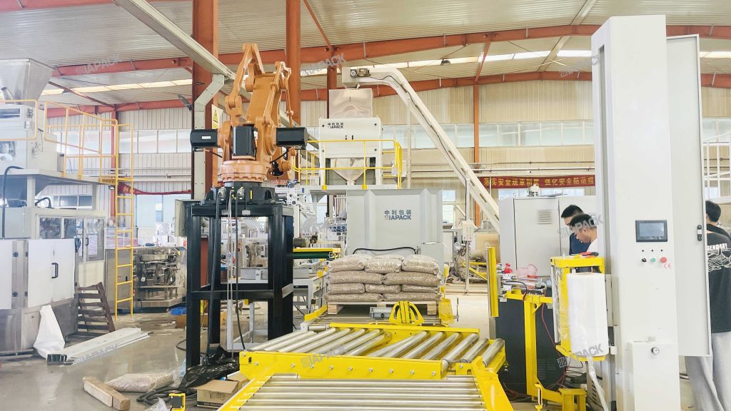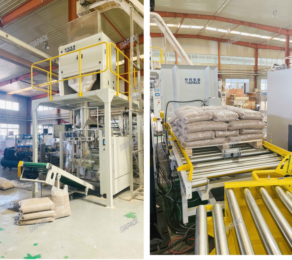 Nachádzate sa tu: Domov » Správy » 15KG Drevené pelety váženie plnenie vrecovanie Paletizačná linka je pripravená na dodanie