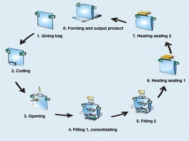 | kapacita | 25-60 sáčkov / min pre bežnú tašku 8-25 sáčkov / min pre vrecko na zips (Rýchlosť závisí od stavu produktu a hmotnosti plnenia)) |