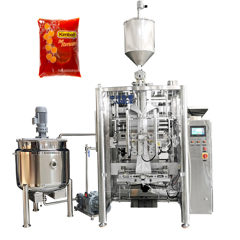 Celá jednotka stroja vrátane násypky na kvapalinu, prenosového čerpadla a spojovacieho potrubia a meracieho plniaceho čerpadla a baliaceho stroja vffs.