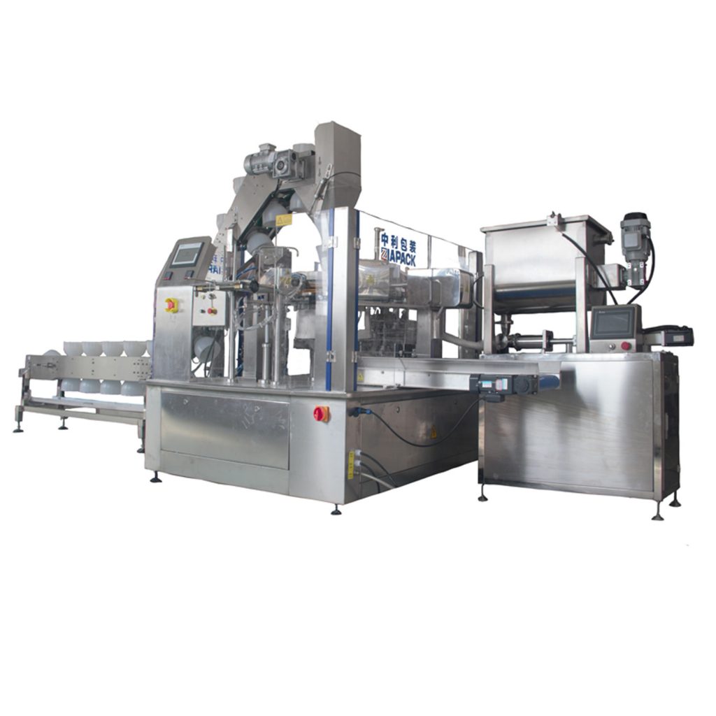 Tento stroj je navrhnutý na plnenie tekutého produktu zmiešaného s pevným produktom, ako je ,predvarenie jedla, ako sú uhorky s polievkou, nakladané olivy, nakladané uhorky atď. omáčka .