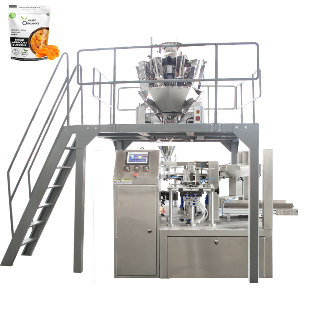 Baliaci stroj s rotačným vreckom s rôznym dávkovaním (ako napríklad viachlavé váhy, plnič šneku, tekuté plnivo atď.) môže byť vhodný pre automatické balenie granulovaného, práškového, tekutého, pastovitého materiálu atď.