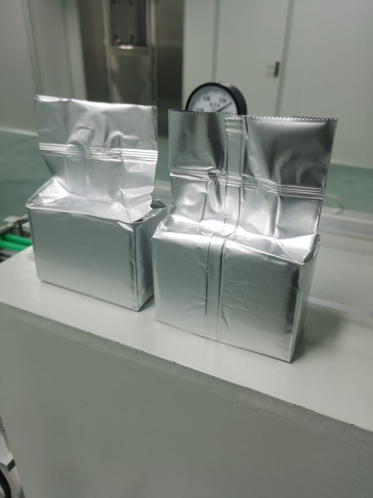 Baliaci stroj VFFS tvarovanie vrecka valcovou fóliou -Váhačka vážiaca a plniaca produkt .- Plnenie vrecúšok produktom spadnutým do modulu na prenášanie vreca -Formovanie a čistenie vrchnej časti vreca -Prehýbanie vrecia -Predtesnenie vreca a vibrovanie -Vrece poslať do vákuová komora ---Vysávanie a konečné utesnenie --Dokončený výstup vrecka a orezanie vrchnej časti vrecka ---Dokončený výstup vrecka