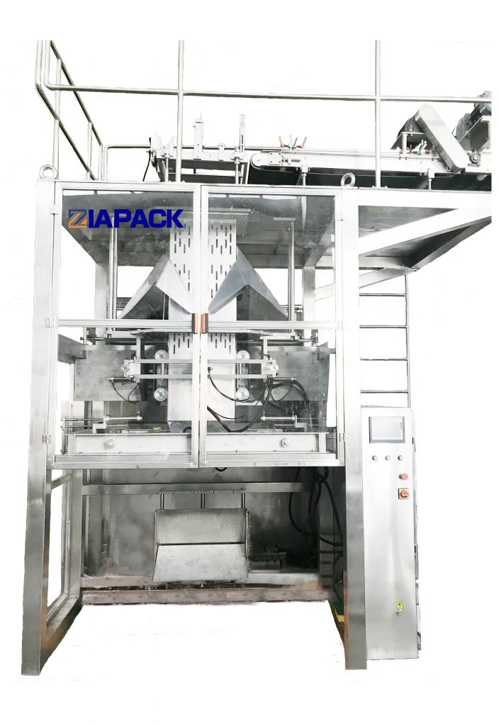 Tento stroj je vhodný na balenie malého vrecka do veľkého vrecka. Stroj dokáže automaticky vyrobiť vrecko a naplniť malé vrecko a potom utesniť veľkú tašku. Tento stroj vrátane mechov: