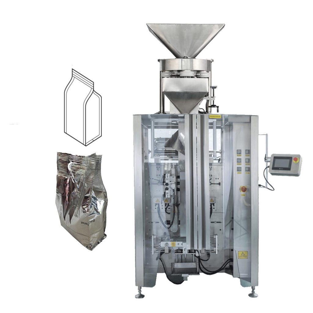 Automatické váhy s viacerými hlavami a vertikálne balenie sa kombinujú v jednej jednotke (2 v 1 technológii), ovládanie pomocou PLC