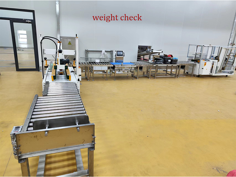 Po naplnení vrecúšok mrazenými potravinami je každé vrecúško znova skontrolované detektorom hmotnosti, aby sa zaistilo, že hmotnosť zodpovedá cieľovej hmotnosti, a potom prechádza detektorom kovov, aby sa zabezpečilo, že sa do každého vrecka neprimieša žiadny kov. Vrecia sa potom prepravia na linku na plnenie kartónov.