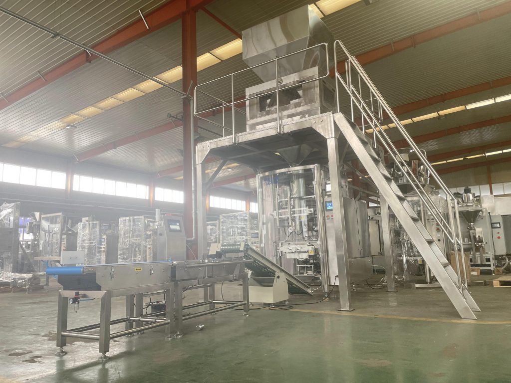 Tento stroj obsahuje jednu súpravu lineárnej váhy a jednu súpravu vertikálneho plniaceho stroja na formovanie vreciek a jeden detektor hmotnosti súpravy.